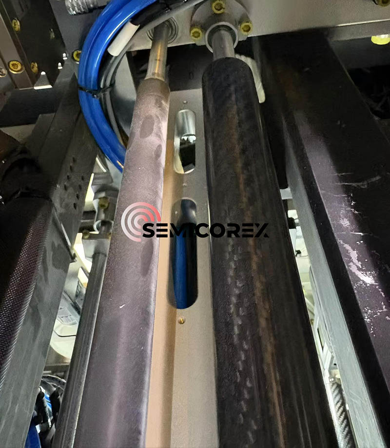 衝突保護 (ソフトランディング): Shore 53 HS グラファイトの表面はかじりません。空気損失が発生した場合、ベアリングはガイド上に穏やかに落ち着き、乾燥潤滑剤として機能し、精密ガイドウェイへの壊滅的な損傷を防ぎます。