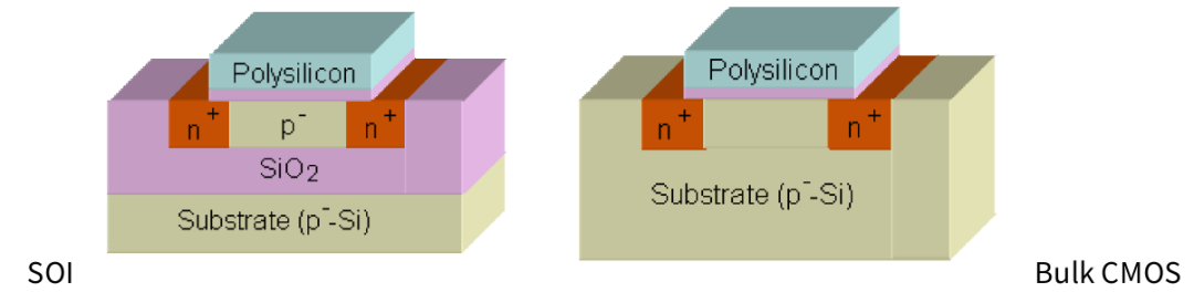 絶縁層の存在SOIウェーハ漏れ電流と静電容量を削減し、デバイスの静的および動的消費電力の削減に貢献します。