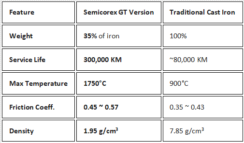質量の削減: GT バージョンの重量は、標準の鋳鉄ディスクのわずか 35% です。