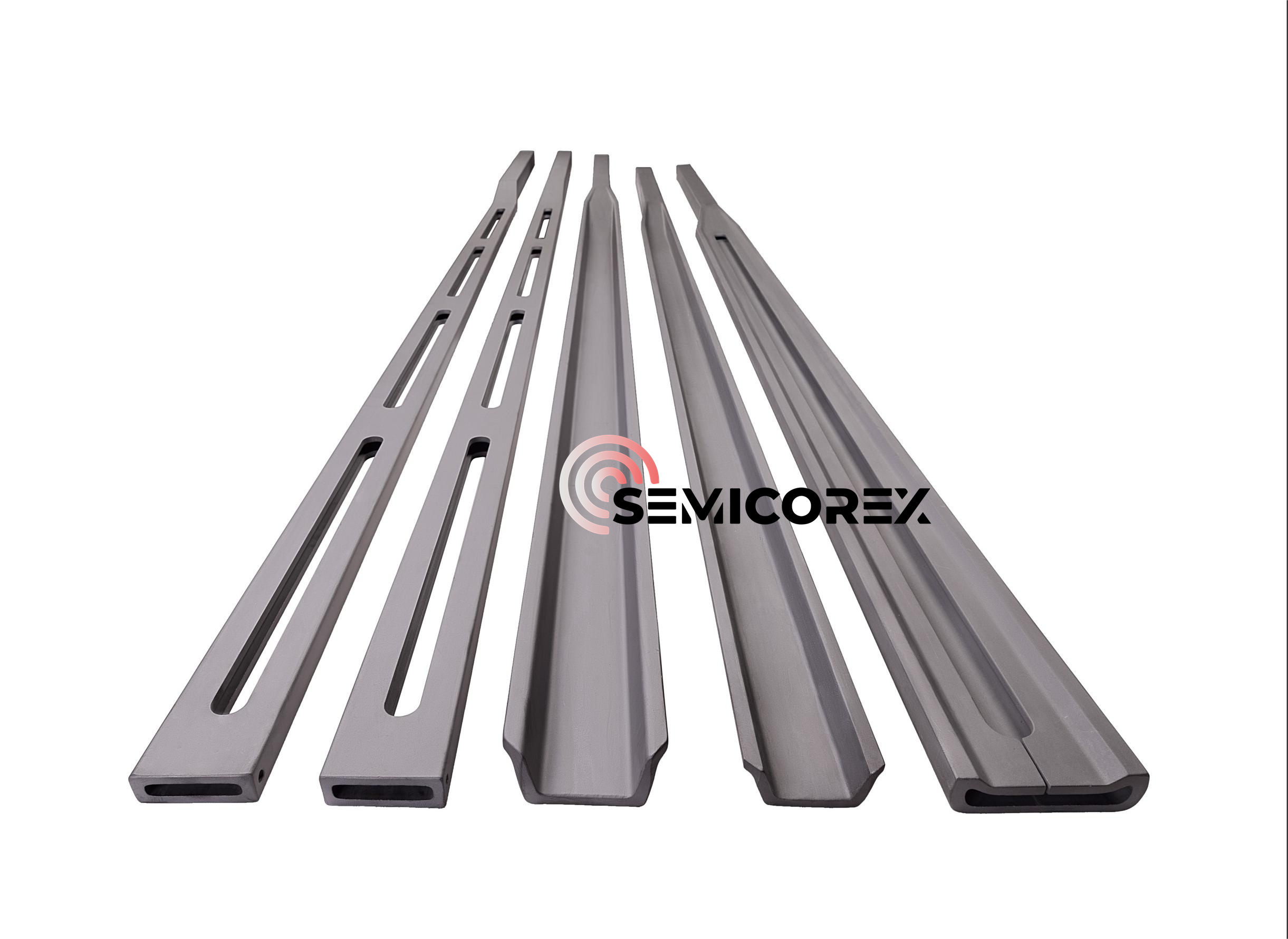 堅牢で信頼性が高くなるように設計された SiC パドルは、ウェーハ ボートまたはウェーハ スタックを保持するカンチレバー タイプのアームです。パドルは、ウエハがプロセス チャンバに挿入またはプロセス チャンバから取り出されるときに、ウエハをサポートします。従来の材料は、このような高温では、変形、反り、または化学劣化によって破損します。炭化ケイ素の機械的安定性と構造的完全性により、パドルは形状や機能を失うことなく複数の熱サイクルに耐えることができます。この機能は、炉のアライメントを維持し、プロセス中にウェーハが損傷しないようにし、高価なダウンタイムを最小限に抑えるために重要です。